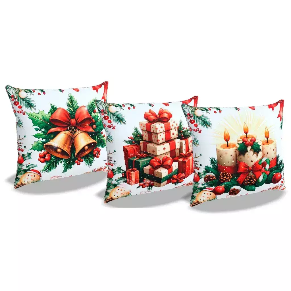 Características principais: - Kit com 3 capas de almofada 45cm x 45cm - Tecido 100% poliéster, resistente e fácil de limpar - Design natalino que valoriza qualquer ambiente